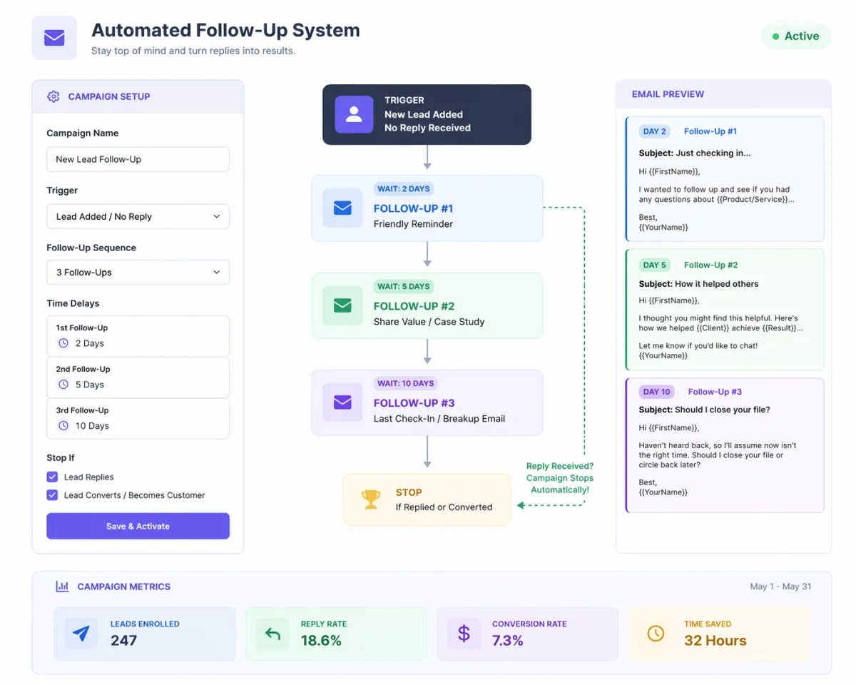 It’s an automated system that helps businesses capture leads, respond instantly, follow up automatically, and generate more reviews—without extra staff.
